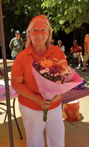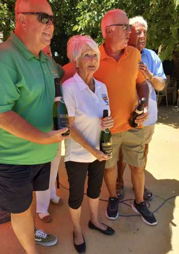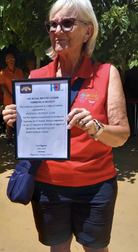 18 Members of the Branch participated. A Certificate of Appreciation was presented to Peacocks Petanca Club by the Branch Chairman John Lord and flowers to Jackie Lowton.