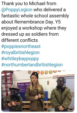 If your school or youth group would like one of our members to come and give a talk or help with a school assembly please contact our Chairman, Michael Dale by emailing chair.whitleybaylegion@gmail.com