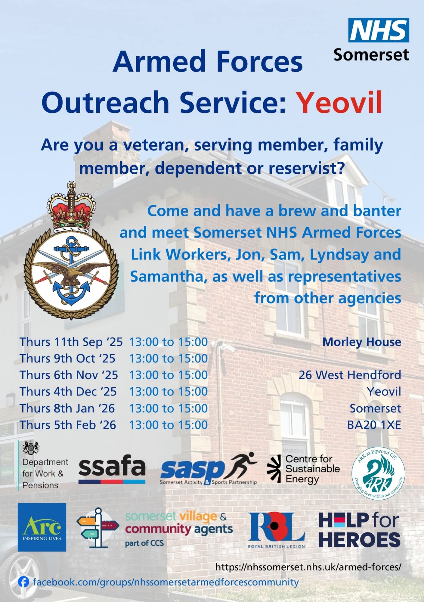 Come and have a brew and banter and meet Somerset NHS Armed Forces Link Workers, Jon and Sam, as well as representatives from many other agencies.