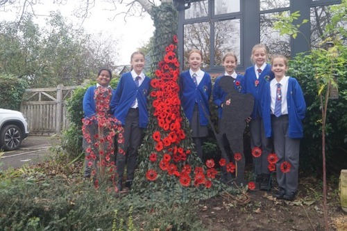Huish Primary School Year 6 Arts & Crafts with Crocheted Poppies & Silhouette