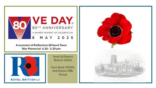 Yeovil & District RBL Celebrate VE Day80 on Thursday 8th May 16.30-17.30 at the Yeovil War Memorial. Yeovil RBL VE Day80th, 8th May 2025, Power Point ppt. VE Day 80Th Yeovil RBL Yeovil RBL VE Day80th, 8th May 2025, Word Document. VE Day80th 2025