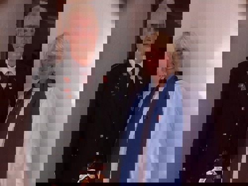 "Lord God, our Father, we pledge ourselves to serve you and all humankind, in the cause of peace, for the relief of want and suffering, and for the praise of your name. Guide us with your Spirit, give us wisdom, give us courage, give us hope and keep us faithful now and always." And then sang "I vow to Thee my Country", very moving for us all.
