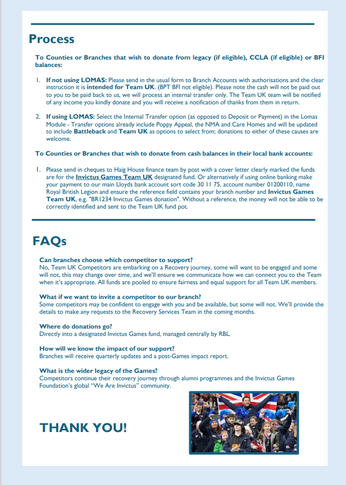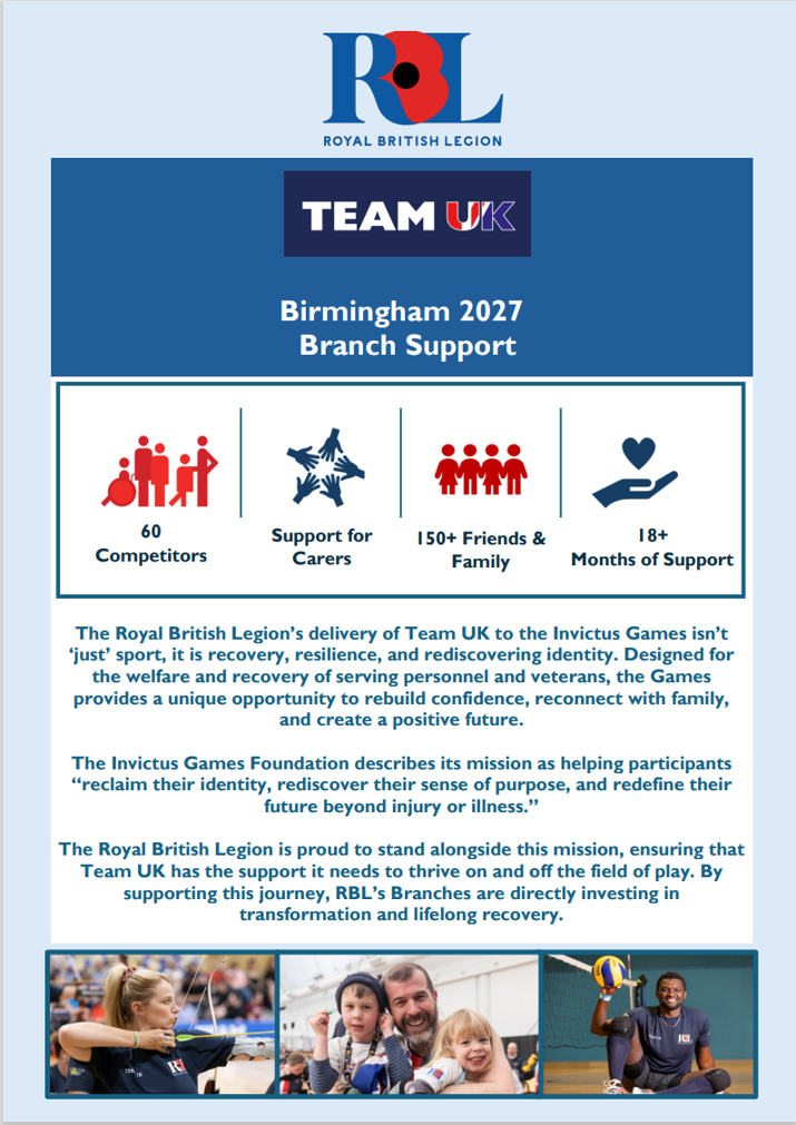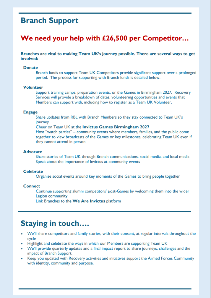 This request only came in September 2025 and because of the short notice all RBL Branches have been asked to assist by fund raising to meet the additional £26,000 per athlete costs.