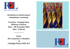 On Thursday, 9th November 2023, the Claddagh Branch of the Royal British Legion will hold its annual remembrance ceremony at the Grangegorman Military Cemetery in Dublin, Ireland's largest military cemetery. The event will start at 11 am. Everyone is welcome.
