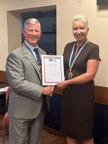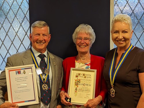 At the Leeds Group meeting on Tuesday 6th June 2023, County Chair Ms Sally Court had the honour of presenting 2 Royal British Legion Members with awards.